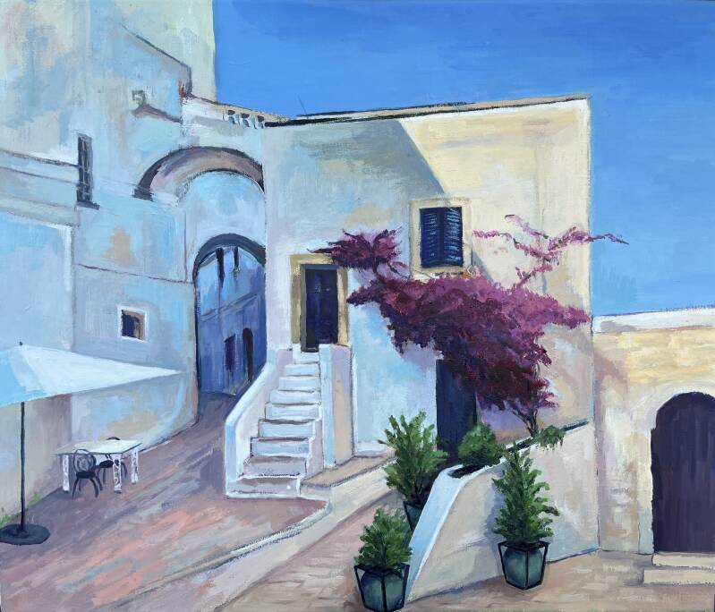 Ostuni, Puglia, Italië, (olieverf) Boerderij in Terblijt (olieverf)